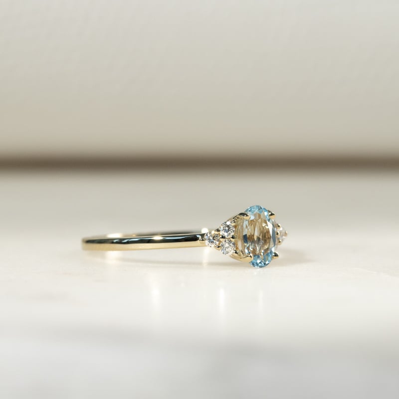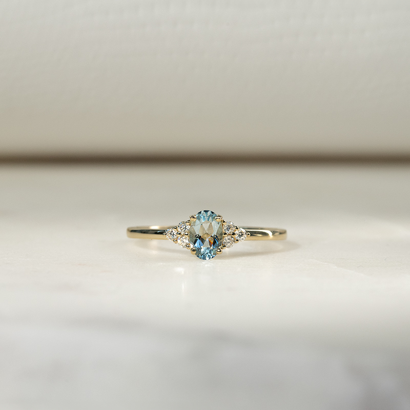 • dominiert wird der Ring von einem himmelblauen ovalen Aquamarin