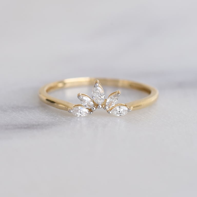 • fünf Diamanten in Marquise-Form bilden ein wundervolles Fächer-Design