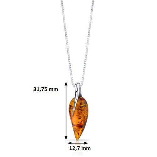 • dieser Anhänger beeindruckt mit seiner langgezogenen Tropfenform des Bernsteins