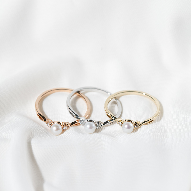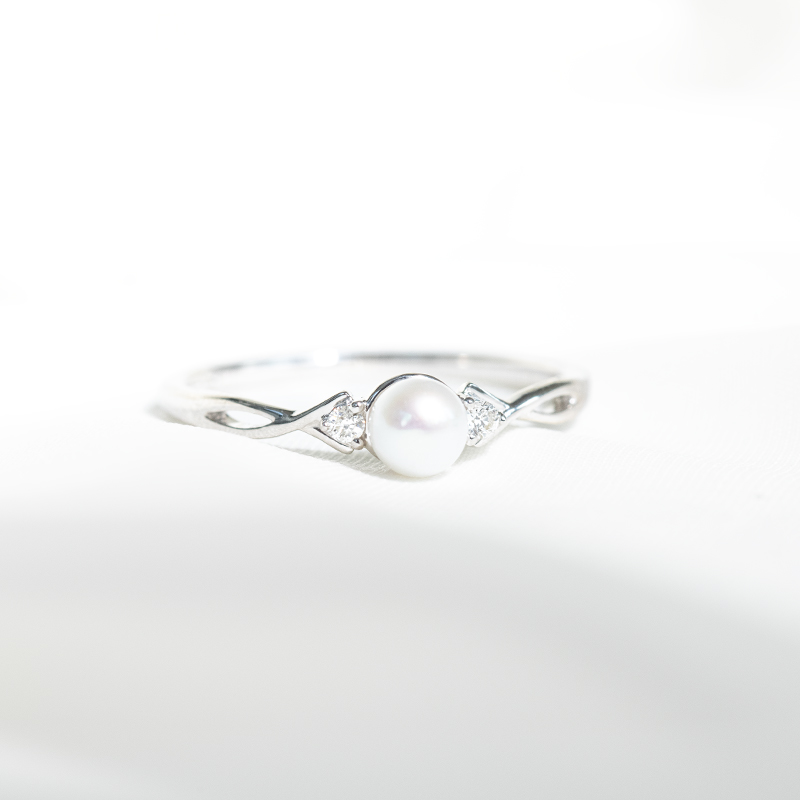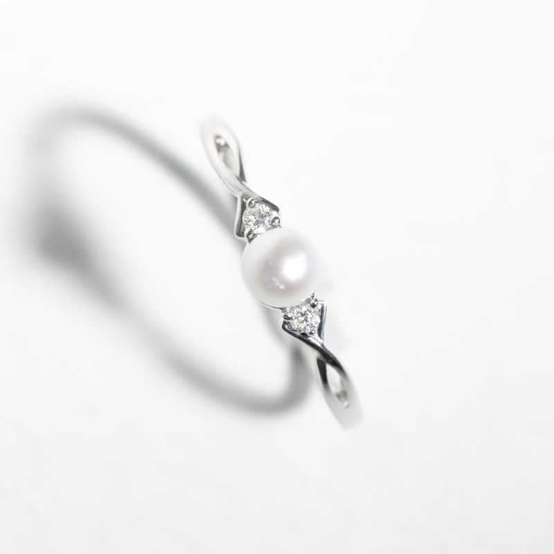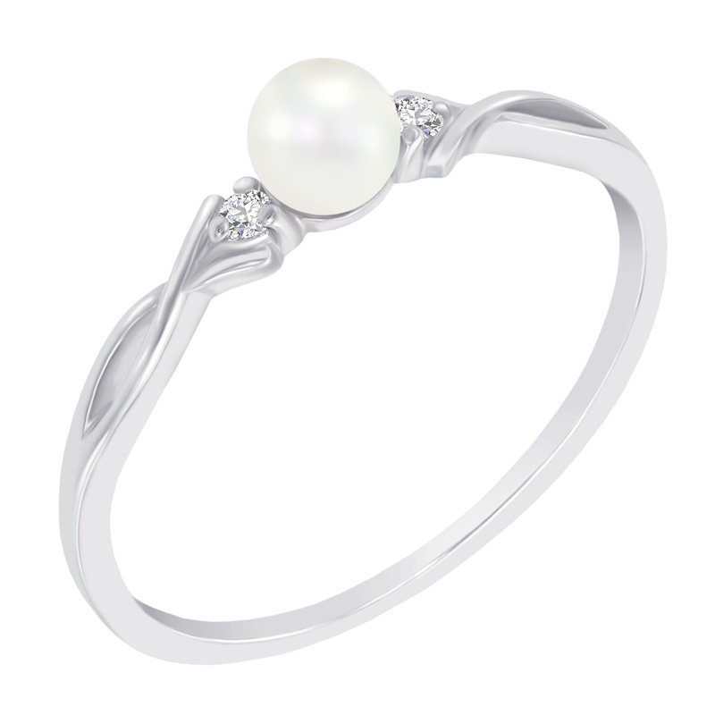 • er wird von einer weißen Perle und zwei seitlichen Lab Grown Diamanten dominiert