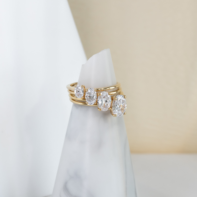 Eleganter Verlobungsring mit einem ovalen Moissaniten mit Auswahl der Größe Frost