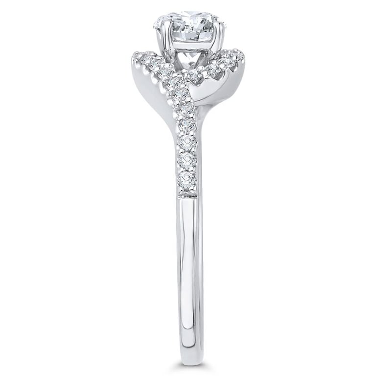 • der prächtige Moissanit erstrahlt in der Umarmung der verflochtenen Ringschiene und funkelnder Lab Grown Diamanten