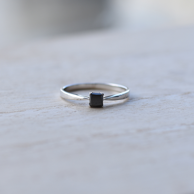 Eleganter Verlobungsring mit schwarzem Prinzess-Diamant Unnati