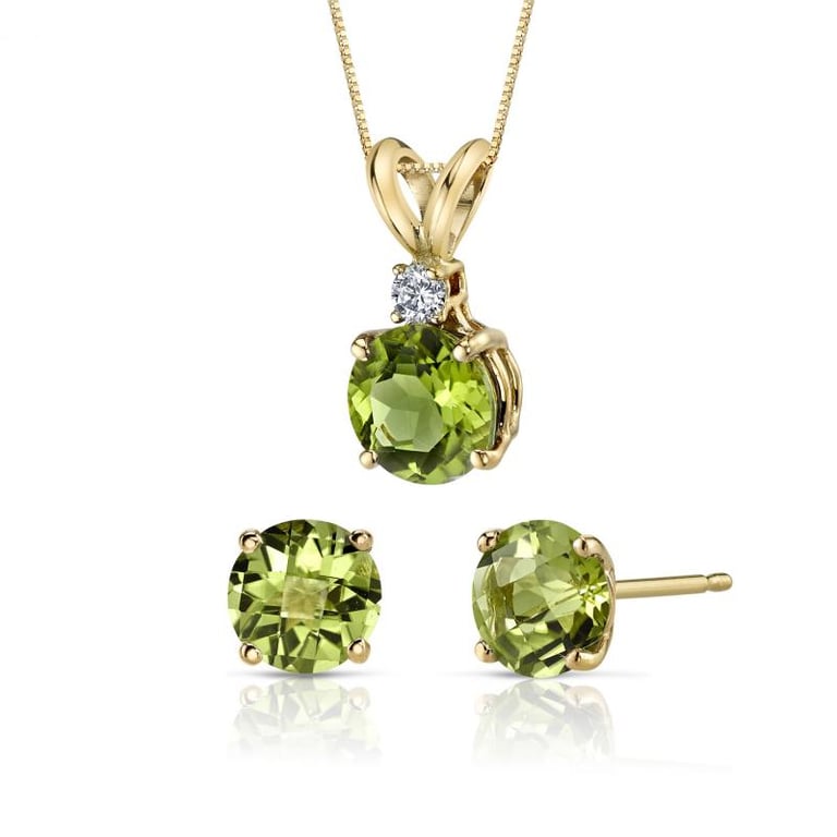 Elegantes Schmuckset aus Gold mit Olivinen und Diamanten Cassiel