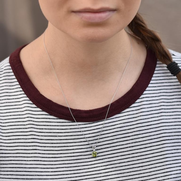 • beim Anhänger wird der runde Olivin von einem Diamanten ergänzt