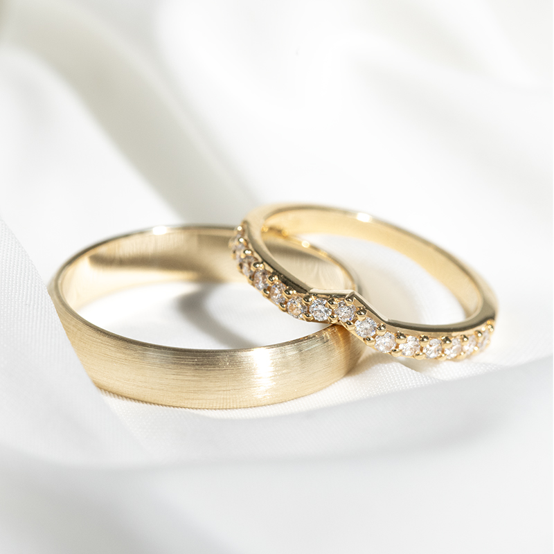 • Trauringe in V-Form aus recyceltem Weiß-, Gelb- oder Roségold