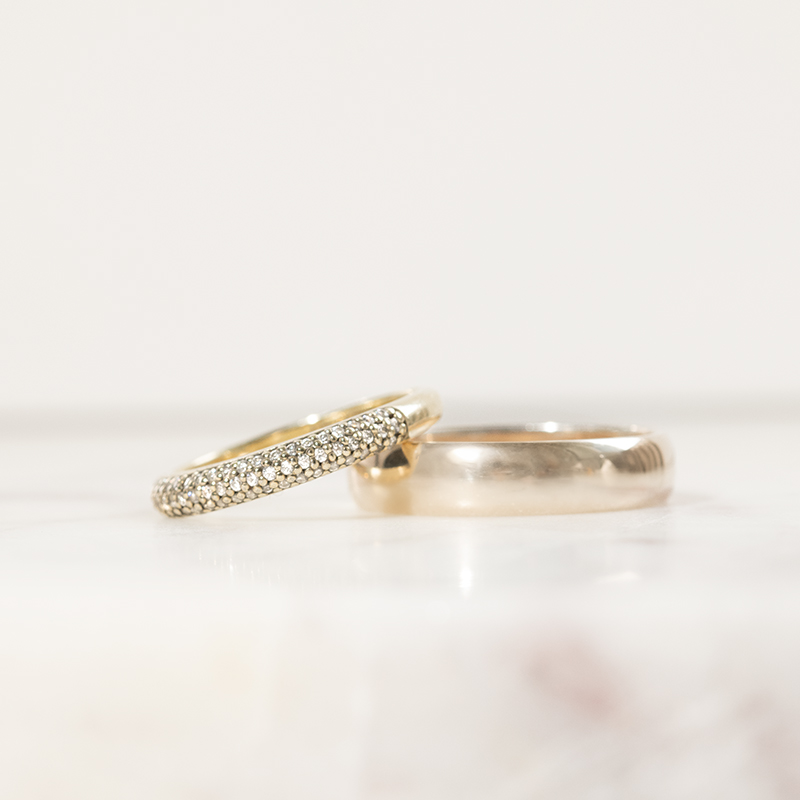 • ein atemberaubend glänzender Ring aus recyceltem Gold oder Platin