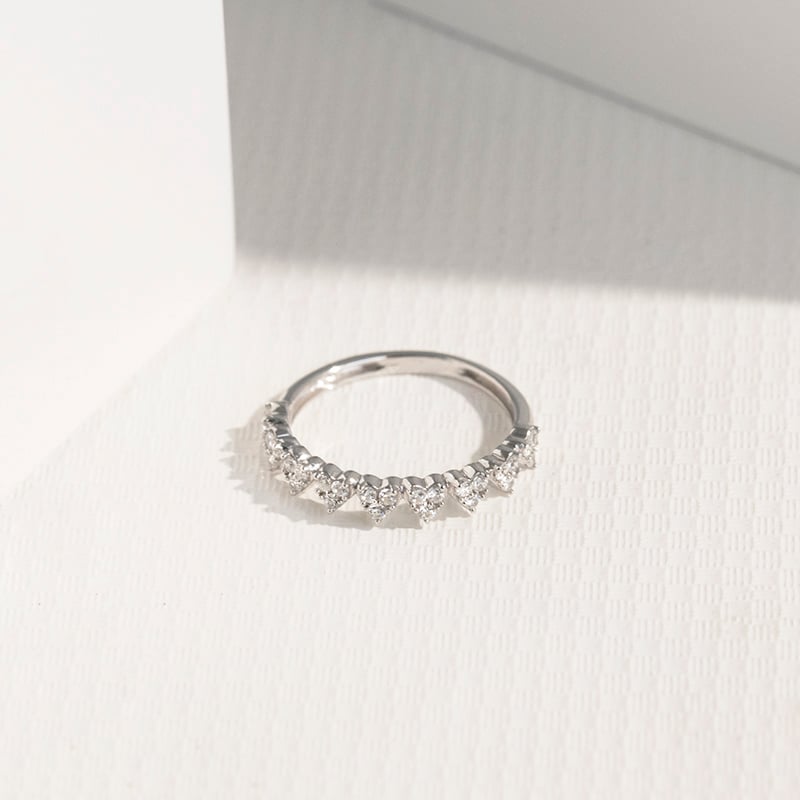 • den zarten Ring zieren 9 Herzen, die jeweils mit drei runden natürlichen Diamanten besetzt sind