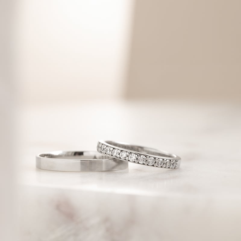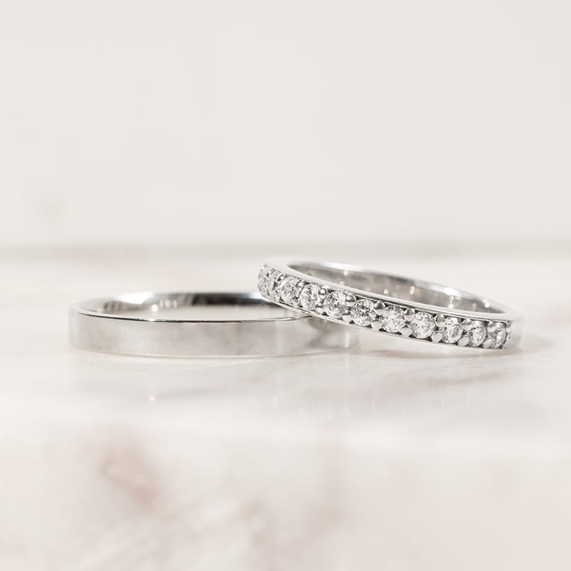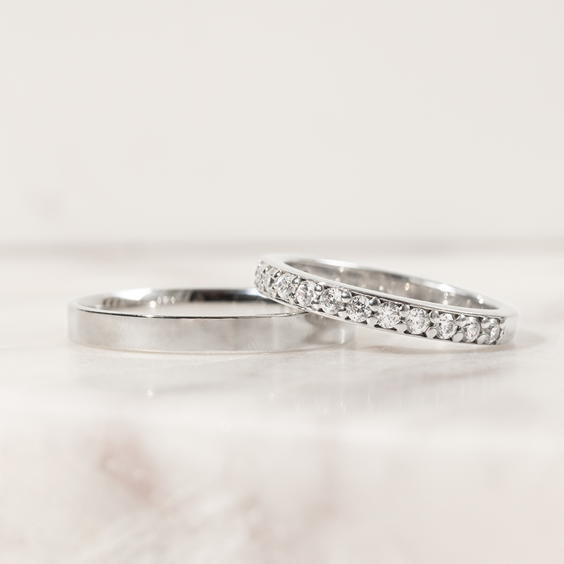 • der schlichte Ring aus recyceltem Gold oder Platin ist mit 15 weißen Moissaniten besetzt
