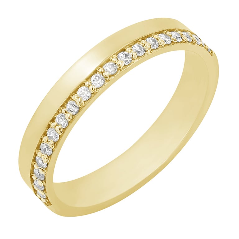 • 19 Moissaniten zieren den halben Ring und die andere Hälfte ist glänzendes Metall