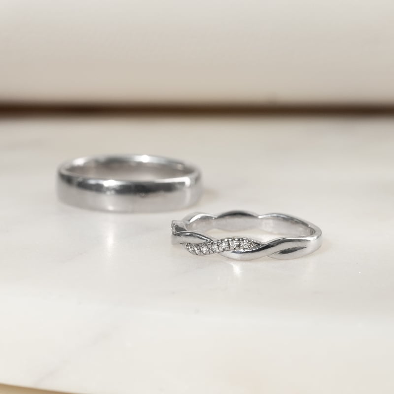 • ein wunderschönes Paar eleganter Eheringe, die sich gegenseitig perfekt ergänzen