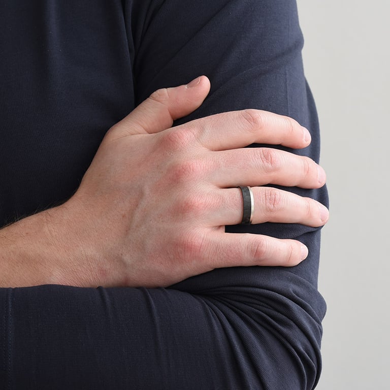 • dezente Trauringe in einer Kombination aus Carbon und Gold