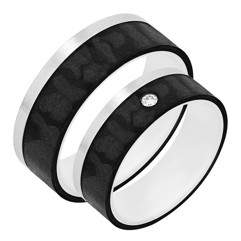 Flache Trauringe aus Carbon und Gold mit Diamant Adidan