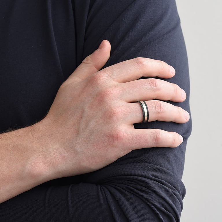• ein eleganter Ring aus 14 karätigem Gold und modernem Carbon