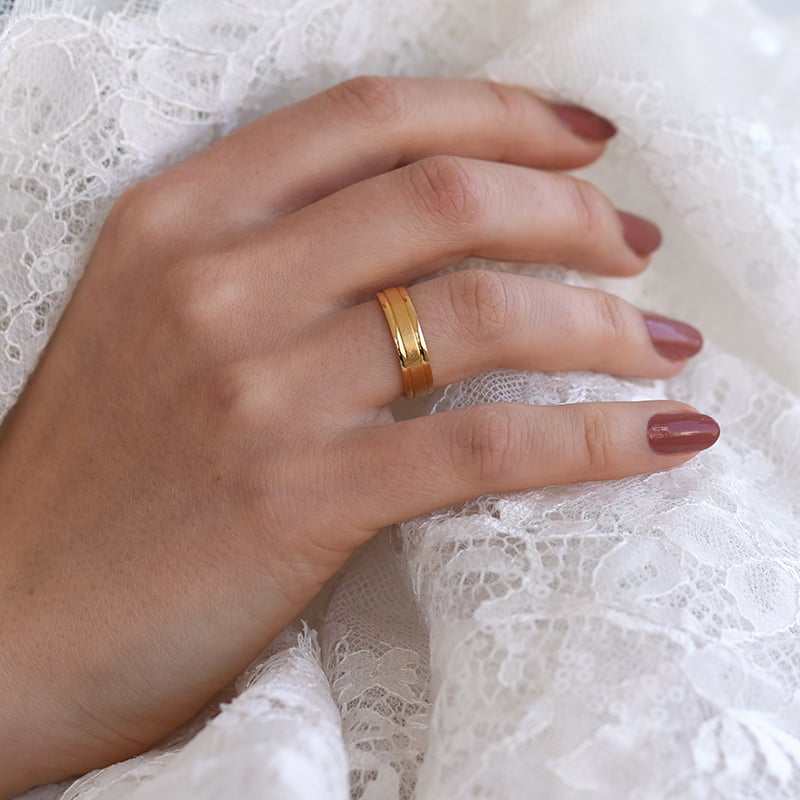 Flache Trauringe mit matter und glänzender Oberfläche Apricote