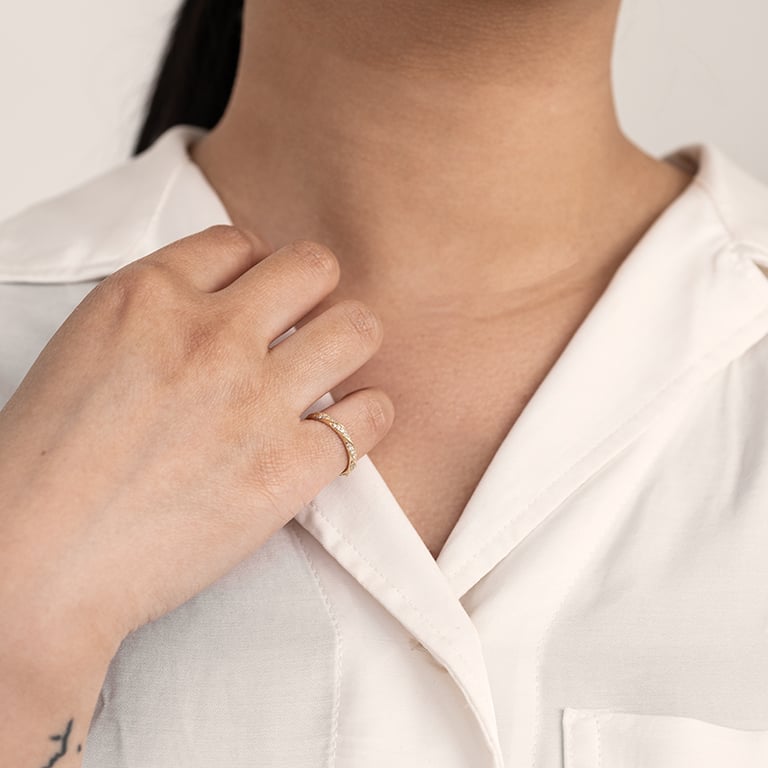 Wir stellen Schmuck aus im Labor gezüchteten Diamanten und recyceltem Gold, Silber oder Platin her. Wir wollen damit ein Zeichen setzen, dass Ethik und Nachhaltigkeit mit Luxus Hand in Hand gehen können.