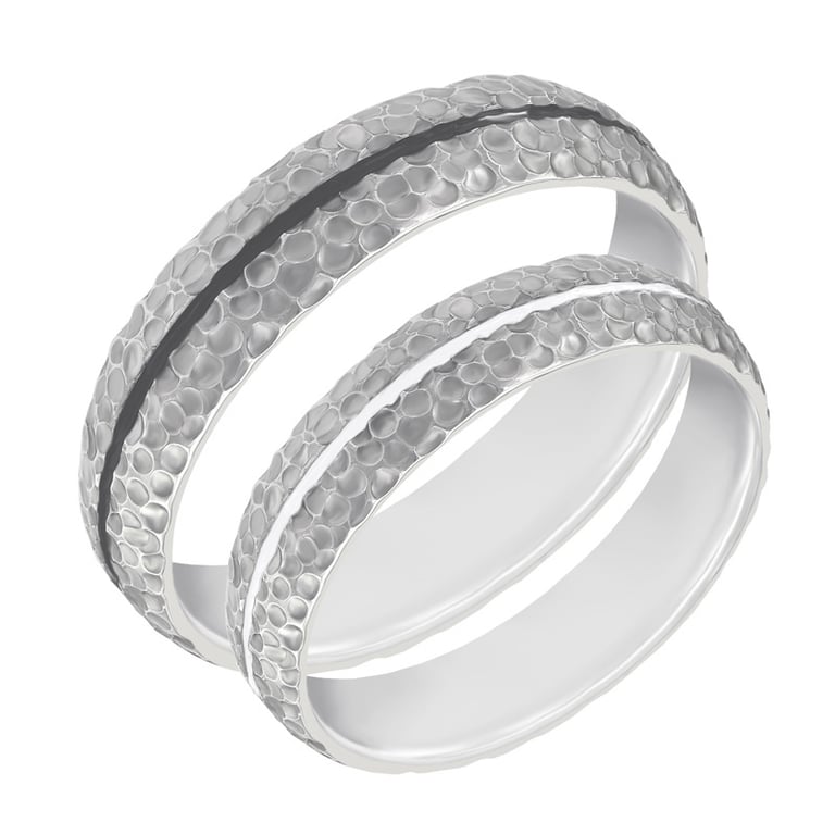 Gehämmerte Trauringe mit schwarzer und weißer Emaille Pernila