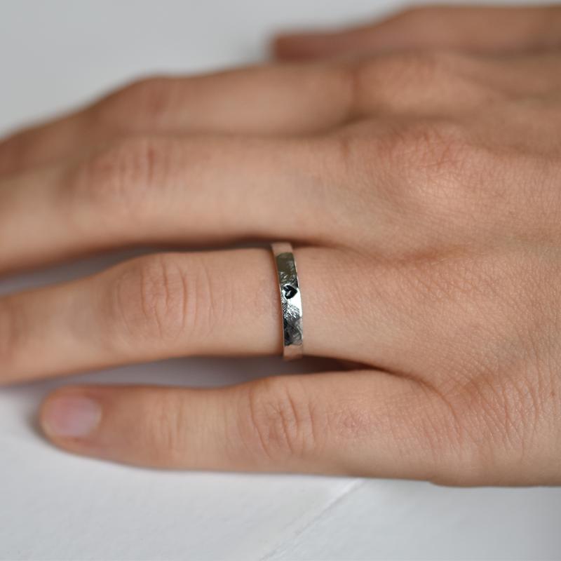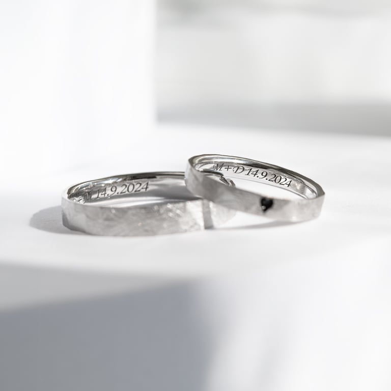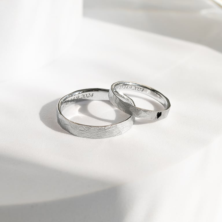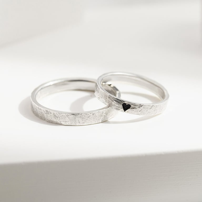 Gehämmerte und gebürstete Trauringe mit Emaille Herz Abale