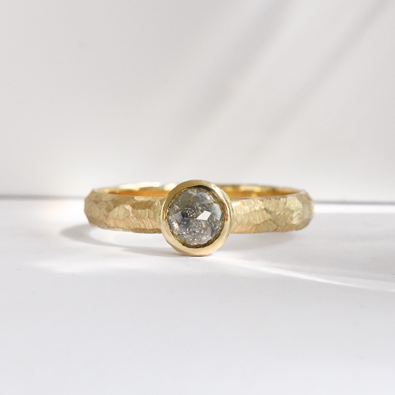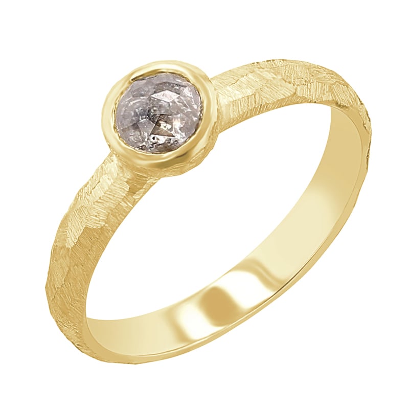 Gehämmerter Goldring mit einem Salt and Pepper Diamanten im Rosenschliff Seraphine