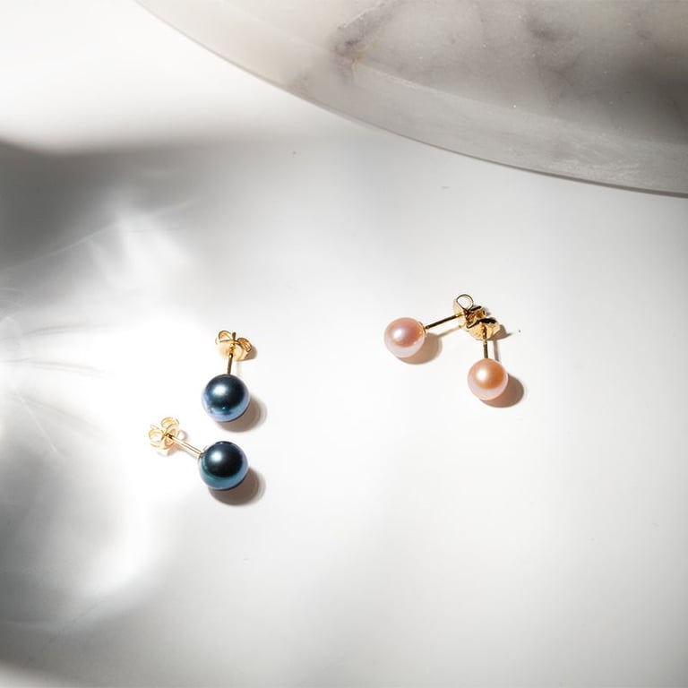 Geheimnisvolle schwarze Perlen in goldenen Ohrringen Dione