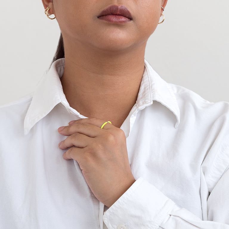 • ein trendiger Ring, der minimalistische Linien und einen verspielten Farbton kombiniert