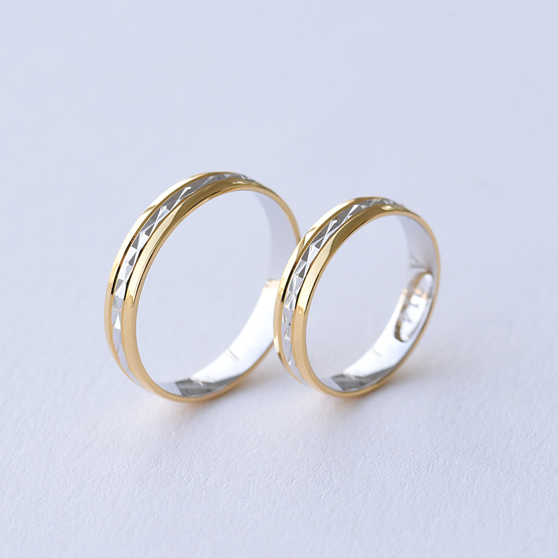 Geschmückte zweifarbige Eheringe aus Gold Sofiane