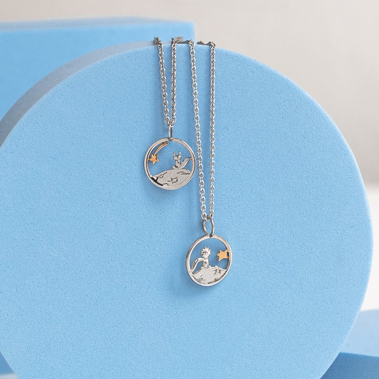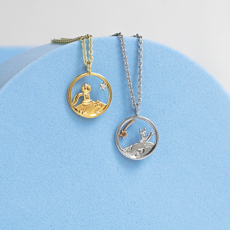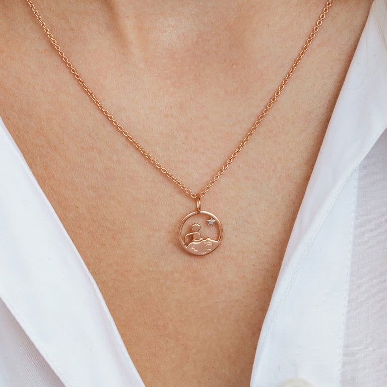 • Halskette aus Gold oder Platin mit einem Motiv aus der Geschichte des Kleinen Prinzen - der Kleine Prinz, der den Nachthimmel betrachtet