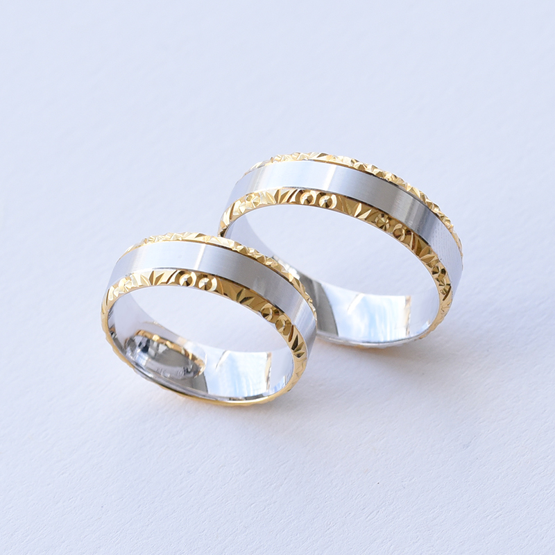 Gescmückte zweifarbige Trauringe aus Gold Cecilie