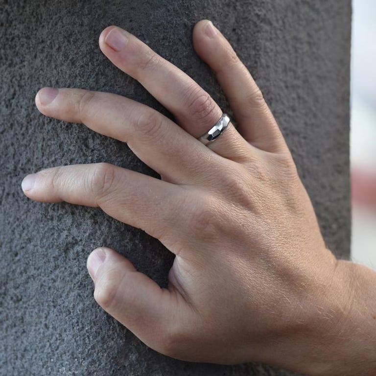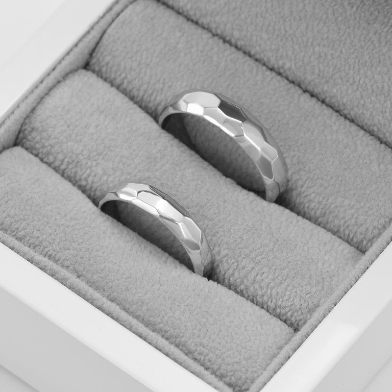 • exklusive Hammerschlag-Eheringe mit glänzender Oberfläche
