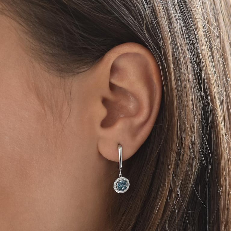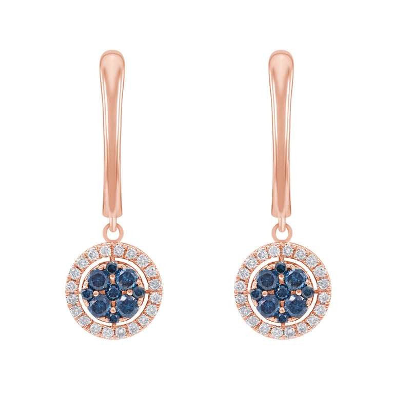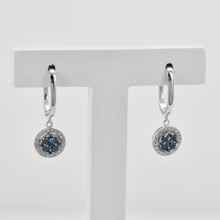 • die Ohrhänger sind mit blauen und klaren Diamanten geschmückt und in Gold eingefasst