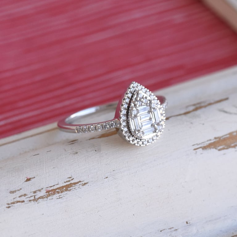 • der ungewöhnliche Wechsel von Round- und Baguette-Edelsteinen macht dieses Stück zu einem kleinen Meisterwerk