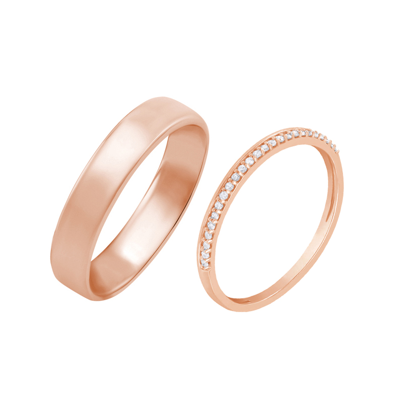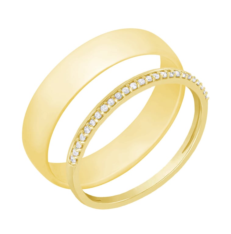 • ein klassischer Ring mit geraden Linien und ein zarter Ring mit funkelnden Diamanten