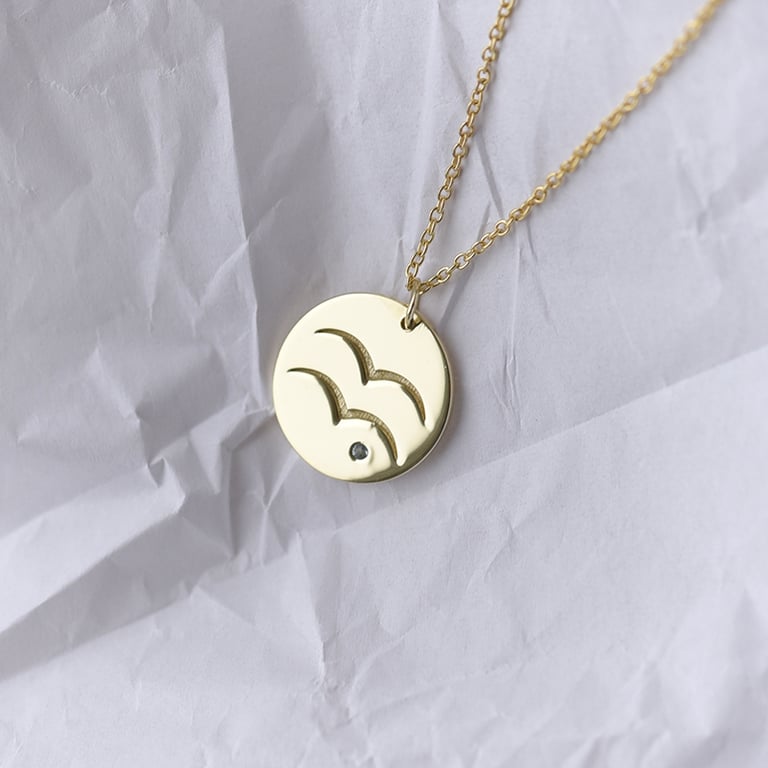 • für alle im Sternzeichen Wassermann geboren wurden, ist dieser goldene Anhänger, der durch einen Aquamarin geschmückt ist