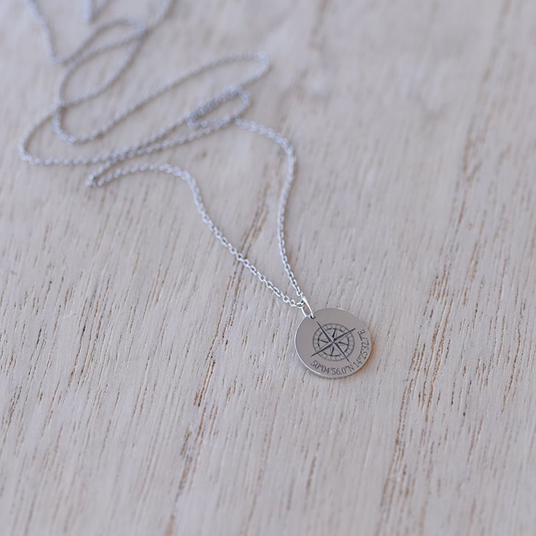 Goldanhänger mit gravierten Wunschkoordinaten Naira