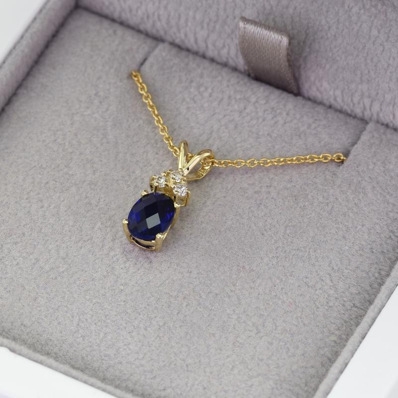 • der Klassiker aus Gelbgold mit Diamanten und blauem Saphir kommt hier als moderner Anhänger