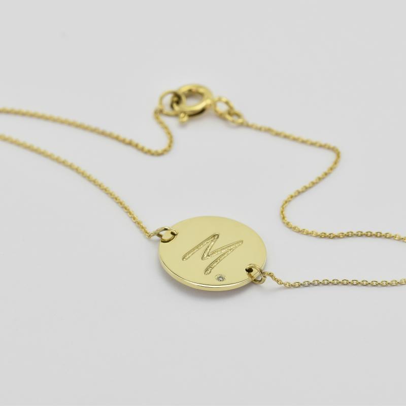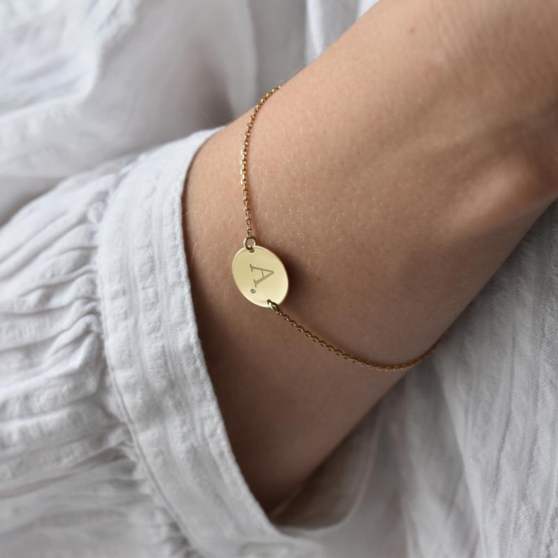 Goldarmband mit Diamanten und Gravur eines Buchstabens Dian