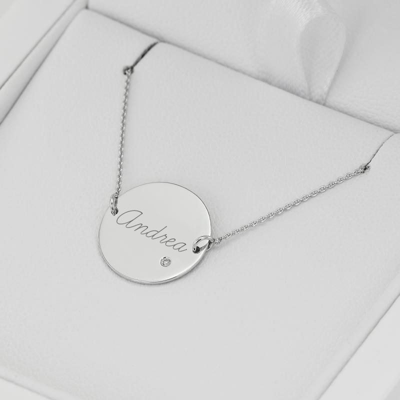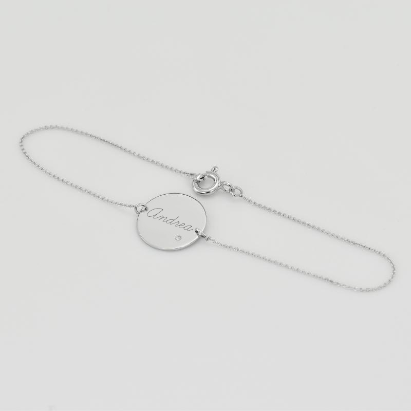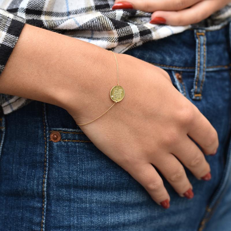 • die Oberfläche eines goldenen Armbands mit einem runden Diamanten und einer Gravur Ihrer Wahl werden Sie nicht mehr missen wollen