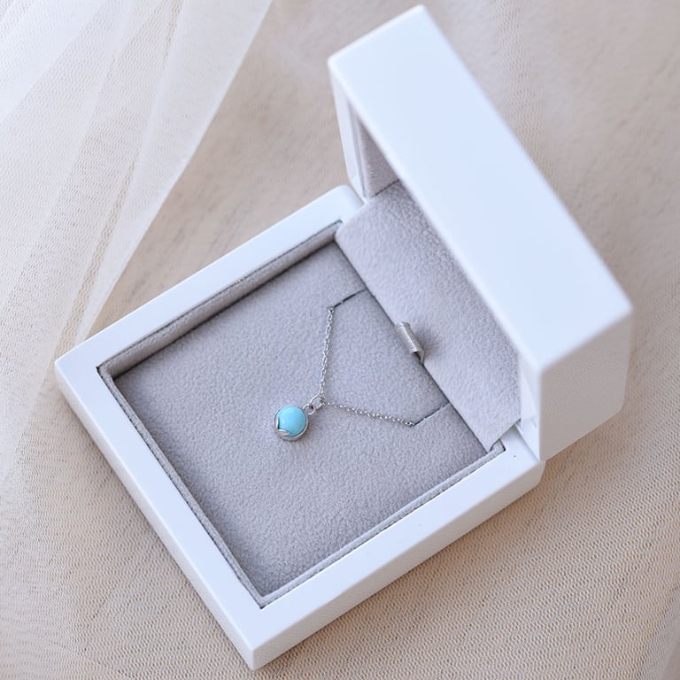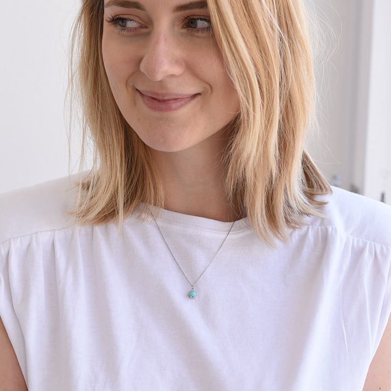 • der Türkis ist als runder Cabochon gearbeitet und wird von einer sicheren Bezelfassung getragen, was ihm ein edles Aussehen verleiht