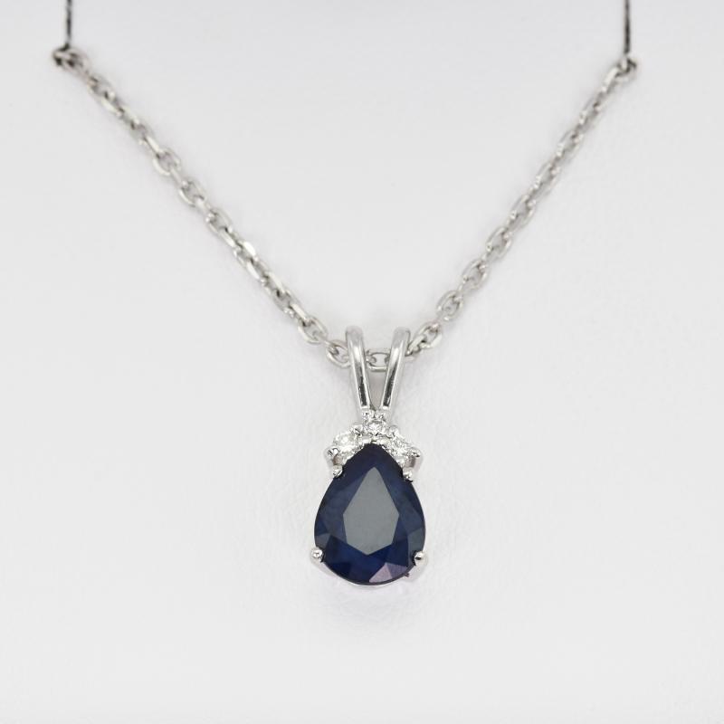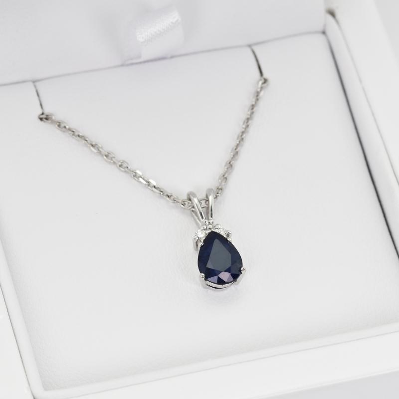 • ein Saphir in Tropfenform in der dunklen Farbe des Nachthimmels