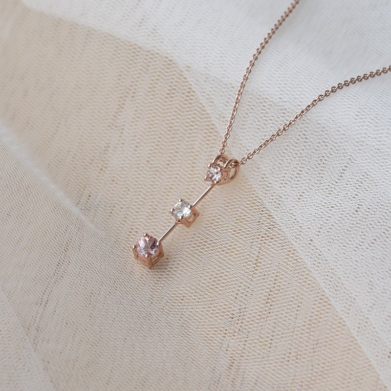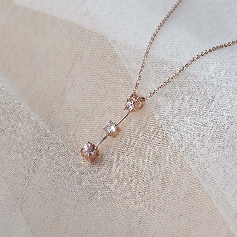 • diese Trias wird durch den Anhänger mit Morganiten und Topasen symbolisiert, der mit einer goldenen Kette geschmückt ist