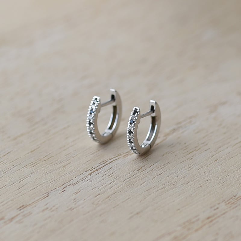Goldene Creolen mit schwarzen und weißen Diamanten Gomati