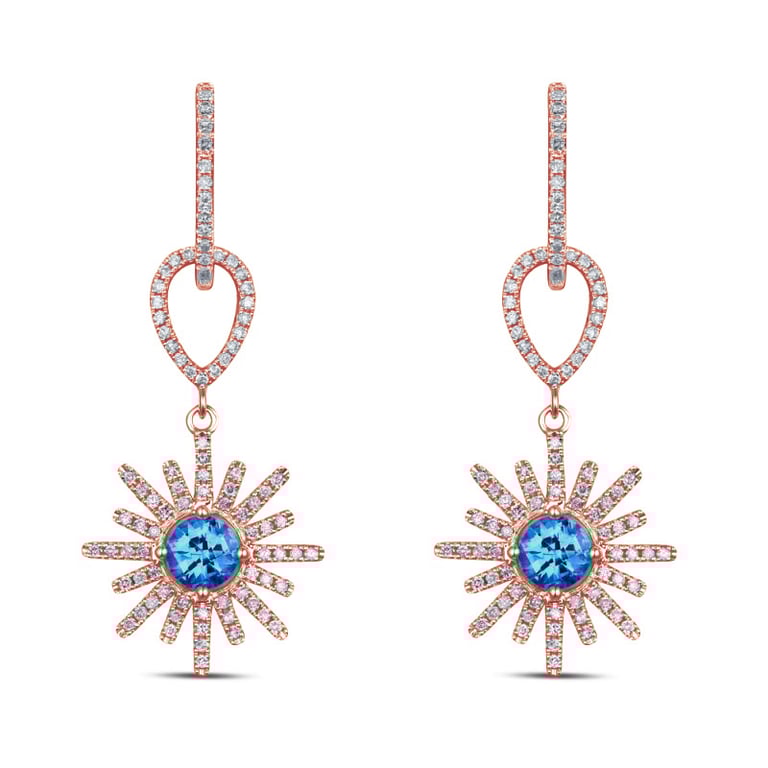 Goldene Diamantflocken mit Topasen in Ohrringen Daxa