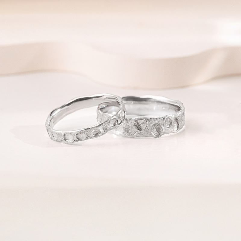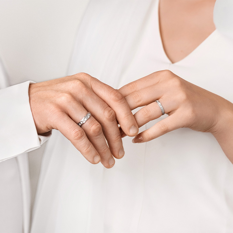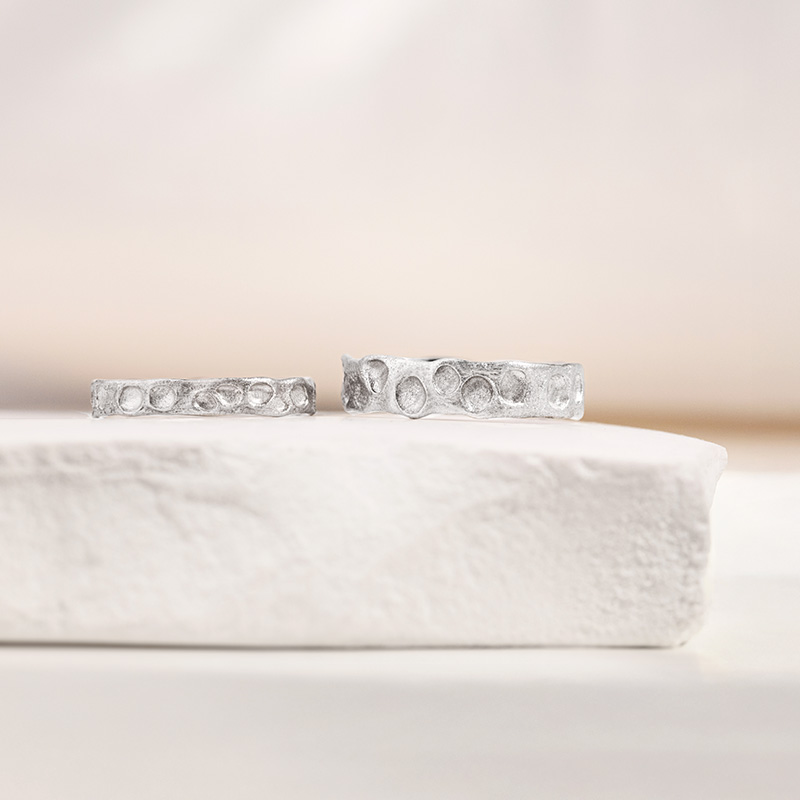 • winzige, präzise eingravierte Kugeln erzeugen einen einzigartigen optischen Effekt, der die Ringe außergewöhnlich und unverwechselbar macht