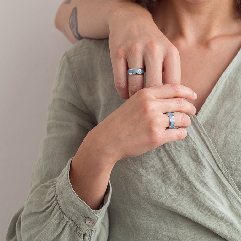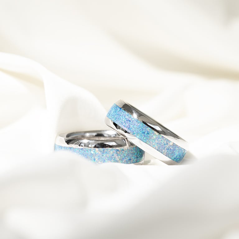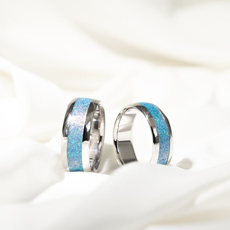Goldene Eheringe mit blauer Opalfüllung Sariah