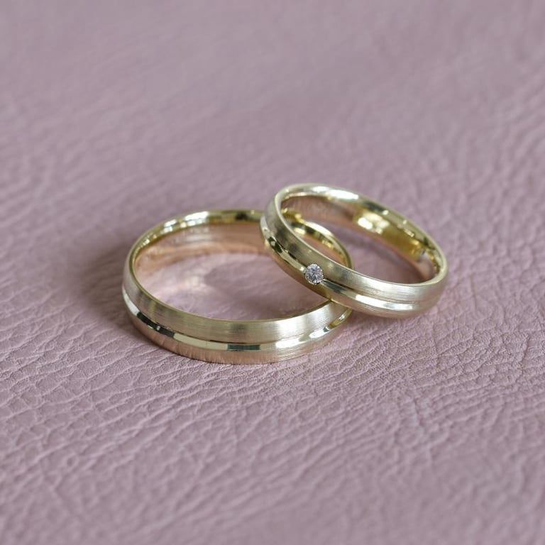 Goldene Eheringe mit Diamant Dellai