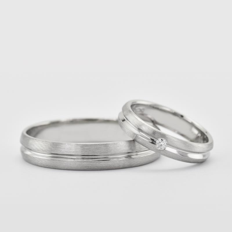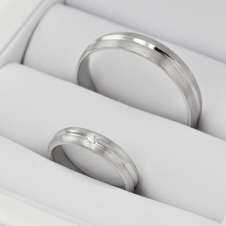 • bei der Damenvariante ist zusätzlich ein Diamant in die Ringschiene eingelassen