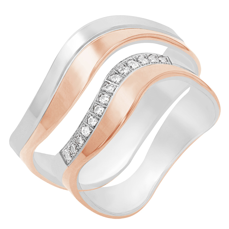 • Eheringe aus vielfärbigem Gold in graziöser gewölbter Ausführung