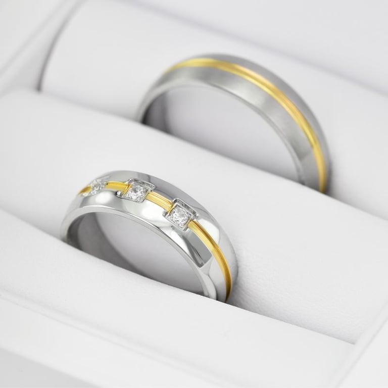 • für Liebhaber gerader Formen sind diese goldenen Eheringe aus zweifarbigem Gold genau richtig