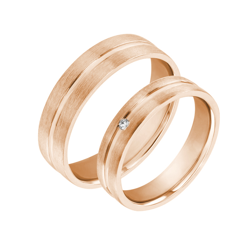 • Eheringe aus gebürstetem Gold mit einem polierten Mittelteil sind minimalistisches Design pur