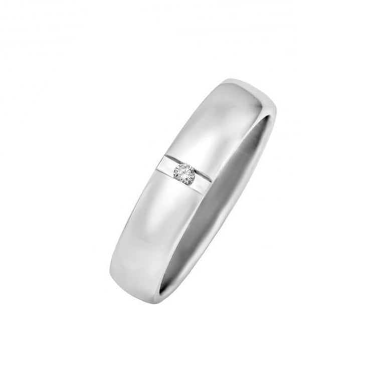 • die Damenvariante ist mit einem zarten Diamanten verziert, der ein feuriger Kontrast zum matten Metall ist
